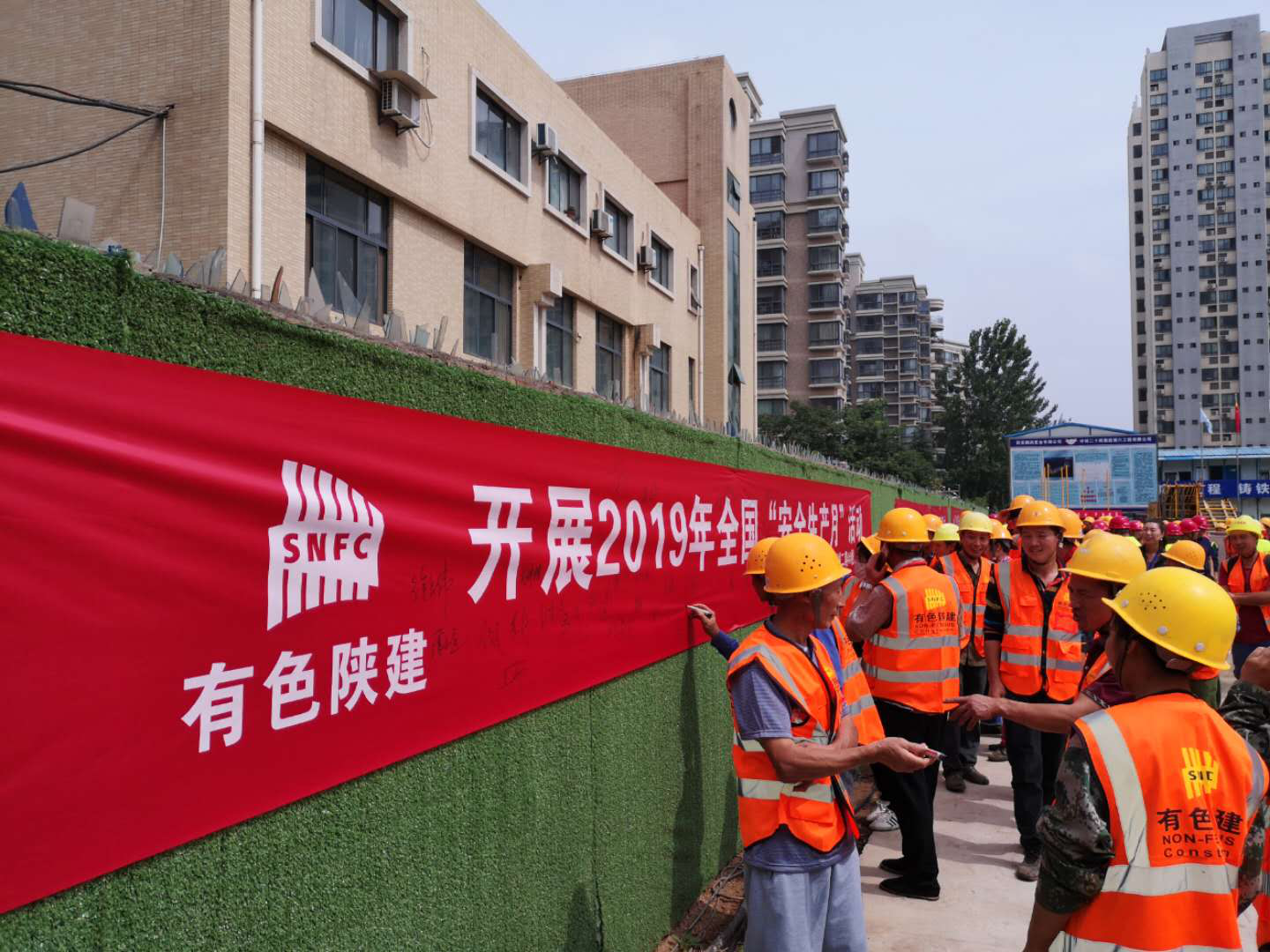 6月6日上午十點,悅秀城二期項目“安全生產月”啟動儀式正式開始,西安鵬潤置業(yè)有限公司副總王衛(wèi)武、監(jiān)理單位總監(jiān)理工程師曹恩黨、公司安全環(huán)保經(jīng)理吳鑫和項目經(jīng)理孫杰分別對本次活動及安全生產月工作作了動員和安排部署。項目部安全主管帶領項目全體人員進行安全宣誓及安全承諾簽字。