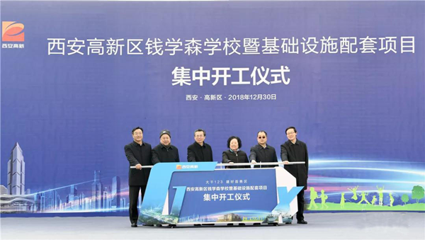 2018年12月30日,西安市高新區錢學森學校暨基礎設施配套項目集中開工儀式在公司錢學森學校項目舉行。省委常委、市委書記王永康,錢學森決策顧問委員會主任委員錢永剛出席。中國航天系統科學與工程研究院院長薛惠鋒致辭。市委常委、高新區黨工委書記鐘洪江主持,市委常委、市委秘書長楊曉東參加。